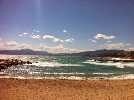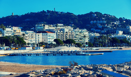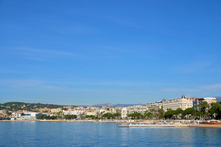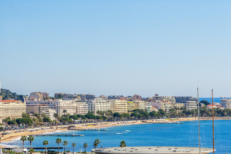 Cannes beach day view, France. Famous town in south of France. Promenade de la Croisette