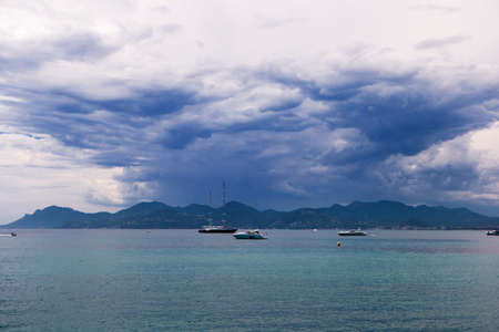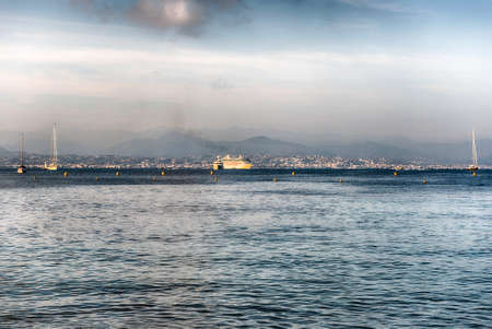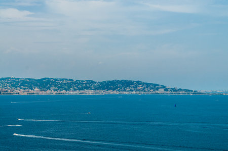 Cannes, France - 30.01.2023 : View of the Mediterranean Sea from the Croisette in Cannes