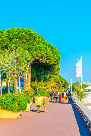 CANNES, FRANCE, JUNE 12, 2017: People are strolling on boulevard de la croisette in cannes, France