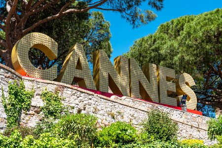 CANNES, FRANCE - JUNE 01, 2019: Cannes City Sign Name On Top Of The Old Town