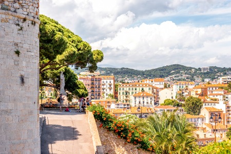 Cannes, France - June 14, 2016: Cannes cityscape view on the square near Castre museum on the french riviera.
