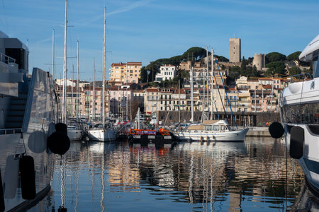 Picture of port of Cannes old city at the French Riviera, France, Europe