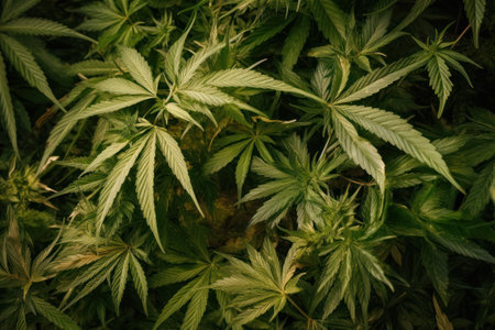 Cannabis sativa background. Green leaves of marijuana. Medicinal indica with CBD. Green background of leaves of marijuana. AI Generated