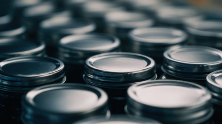 Closeup medium shot showcasing fitted metal domed lids precisely aligned on containers highlighting secure sealing and durability.