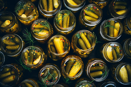 Pickle Perfection: Captivating Overhead View of Pickle-filled Jars