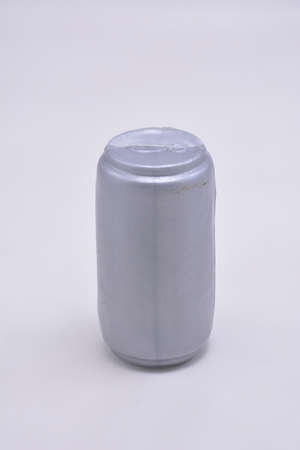 A metallic food can featuring visible rust and dirt, isolated on a white background. This image captures the texture and reflections, ideal for packaging themes.