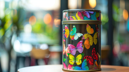 A donation box decorated with colorful butterflies p at a local cafe to collect spare change for the fundraiser.