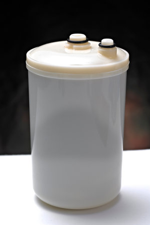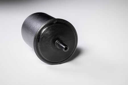 New fuel filter in a black plastic housing for diesel and gasoline engines on a gray background