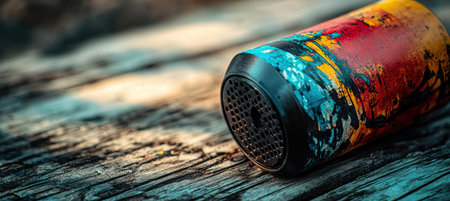 Colorful Paintball Barrel Cover on Wooden Surface for Modern Contrast and Design