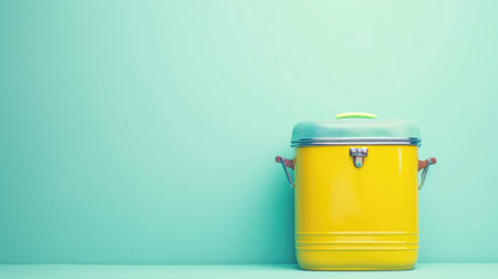 A striking gold container sits on a bright yellow surface, creating a captivating minimalist aesthetic. The interplay of light and shadow enhances the modern design.