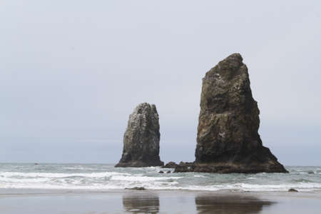 Beautiful misty ocean shore at Cannon Beach, Oregon in the summer of 2020