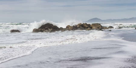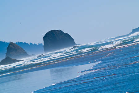Waves breaking on the shore of the Pacific Ocean in Oregon.
