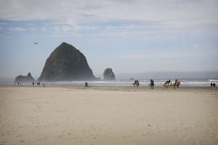 beach scene with people at the canon beach in oregon