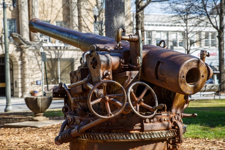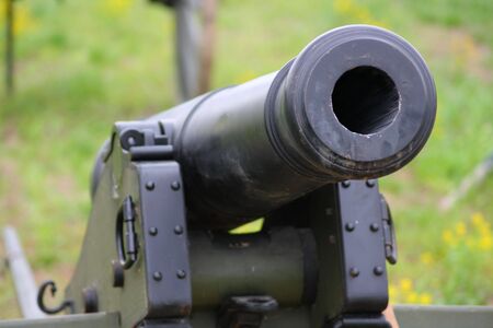 German gun barrel from WWII. Historical reenacting. Kiev,Ukraine