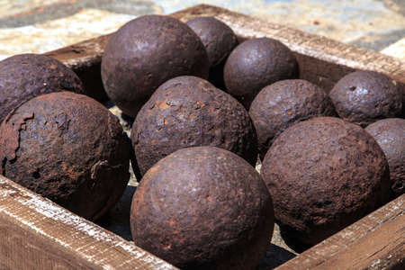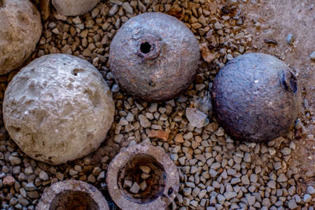 Ancient cannonballs in Vietnam Military Musium in Hanoi