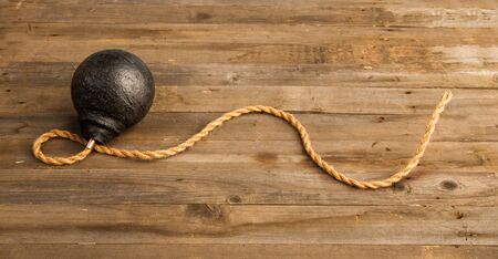 black iron round bomb with fuse-cord. Weapons of mass destruction. 3d render