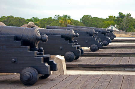 Late nineteenth (19th) century iron cannons, in exhibition. Fort De Soto, Florida