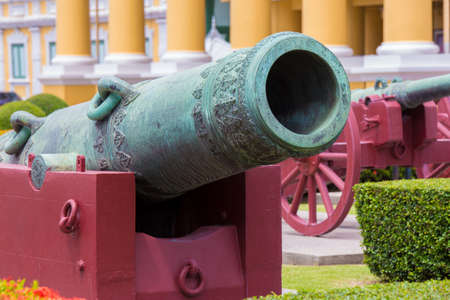 Bangkok, Thailand 05/09/2016 Close up of a large canon in front of the ministry of defense in the center of Bangkok Thailand