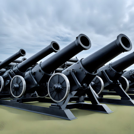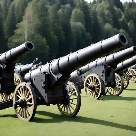 large cannon, view along the long trunk of the black foreshortening on carrying handles