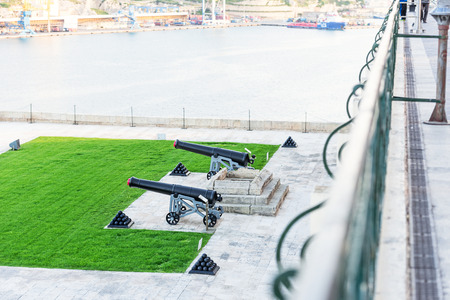 The old gun in La Valletta and Fort St. Angelo of La Vittoriosa in Malta