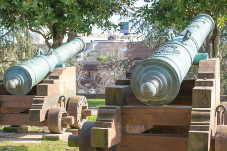 SPAIN, ASTURIAS, OVIEDO - February 2019: Old historical cannon in the park for all to see