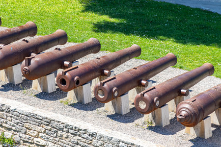Pula Croatia Istria Peninsula April 29, 2022. City architecture. Castle (Venetian fortress) Cannons