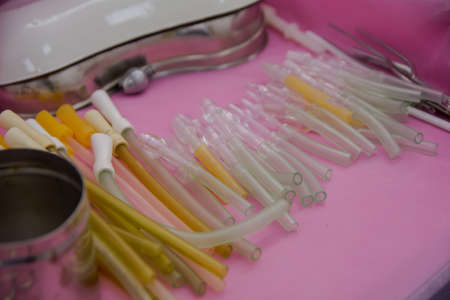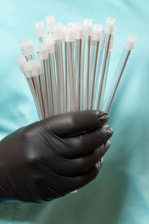 endotracheal tubes of different diameters lie on a dark background. close up