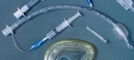 endotracheal tubes of different sizes and diameters lie on a dark background