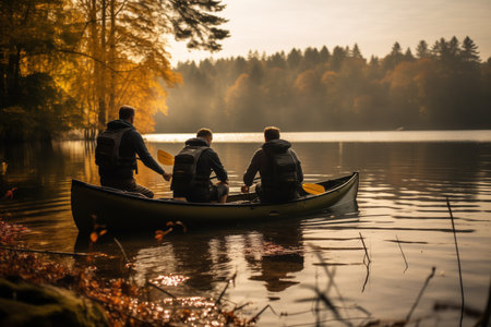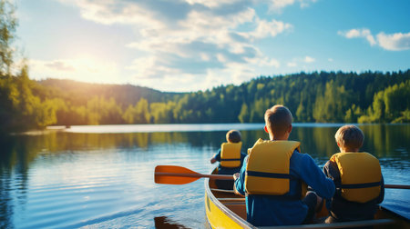 Family kayaking on a serene lake, summer adventure, Bonding and nature