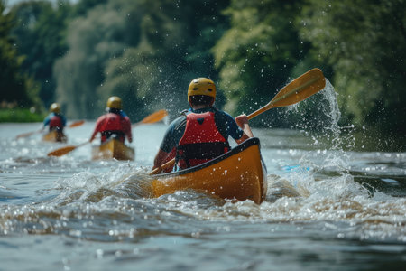 kayaking on the river. Outdoor summer vacations. Holiday travel activities. Discover the beauty of earth, generative ai