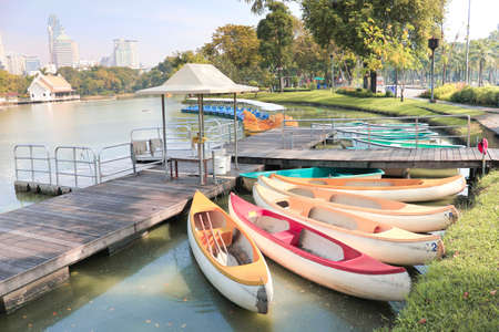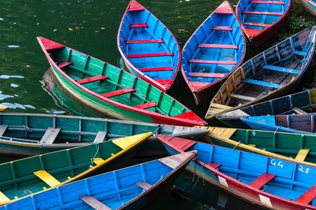Colorful wooden boats on Phewa lake Pokhara Nepal