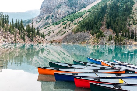 Beautiful view of kayak dock at Lake Moraine in Banff National Park in Canada