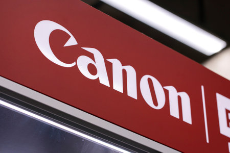 Amsterdam, Netherlands -september 15, 2017: Canon letters on a display in a warehouse