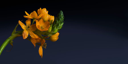 Yellow flower ornitogalum isolated on black background