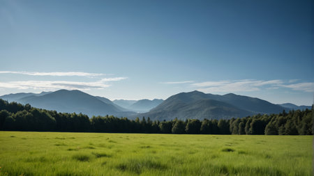 Green fields and distant mountains of natural scenery