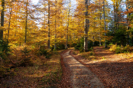 Pathway through an autumn forest in the mountains