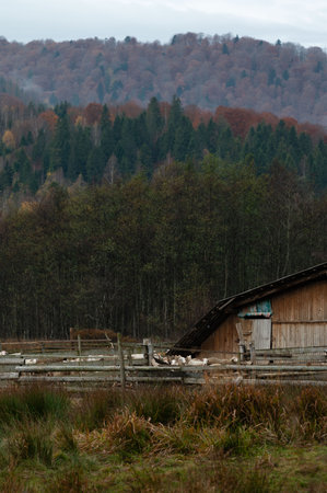 Foggy autumn morning in the Carpathian mountains, Ukraine