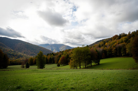 Mountain valley in autumn. Some grain on image due to higher iso setting in camera.