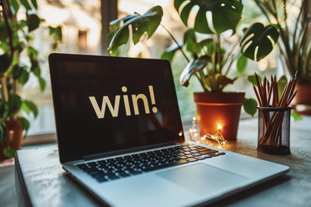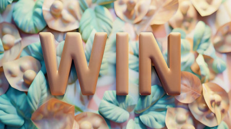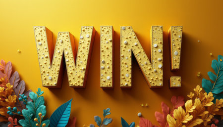 The bold, textured letters of WIN pop against a cheerful yellow backdrop, surrounded by colorful foliage. This lively composition radiates positivity and celebration, making it perfect for motivational themes and success-oriented messages.