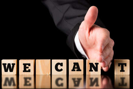 Positive thinking concept, man using a hands separated the word between can and not. Can do attitude concept.