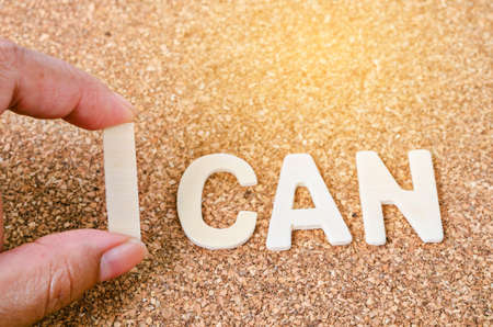 Hand arrange wood letters as I CAN word on wood background. Success and challenge concept.