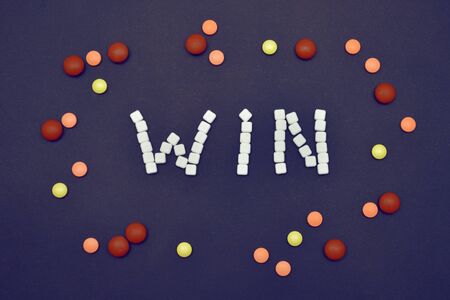 Top angle view of square letters with text WIN WIN.