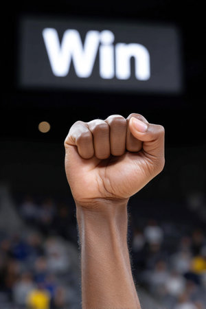 Word WIN with fingers instead of letter W