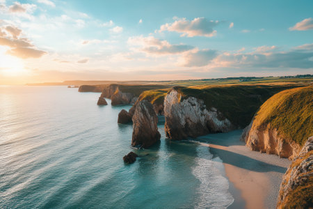 AI Generated. Digital green coastal cliffs with rugged beauty