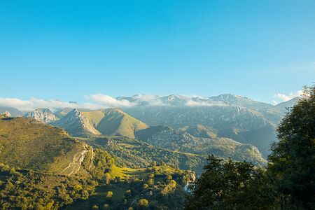 Meadows and mountains in Picos de Europa.Mountain landscape
