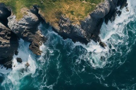 AI Generated. Aerial view of the ocean meeting the rocky coastline