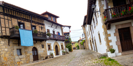 Charming European village with beautiful stone houses, no people. Plenty of copy space available.