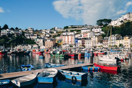 Colorful fishing boats in the seaport of Luarca, Asturias, Spain. Tourist concept