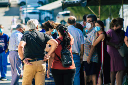 Carmona Spain July 19, 2021 Unidentified Spanish people with face mask shopping at local market in downtown during Coronavirus outbreak hitting Spain, wearing a mask is mandatory