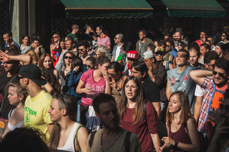 MILAN, ITALY - MAY 1: Thousands of people take part in Mayday parade to celebrate the international Workers' Day on MAY 1, 2014 in Milan.